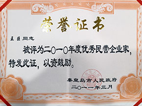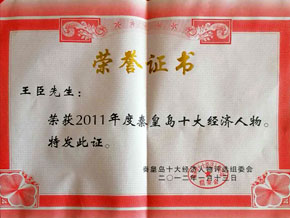 - 6、2011年董事長(zhǎng)王臣被評(píng)為2011年度秦皇島十大經(jīng)濟(jì)人物