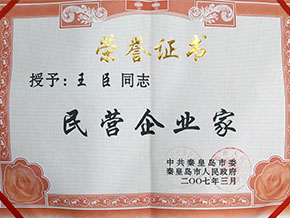 - 15、2006年總經(jīng)理王臣被授予外來(lái)務(wù)工優(yōu)秀民營(yíng)企業(yè)家光榮稱號(hào)